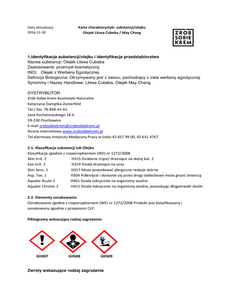 1.identyfikacja substancji/olejku i identyfikacja przedsiębiorstwa