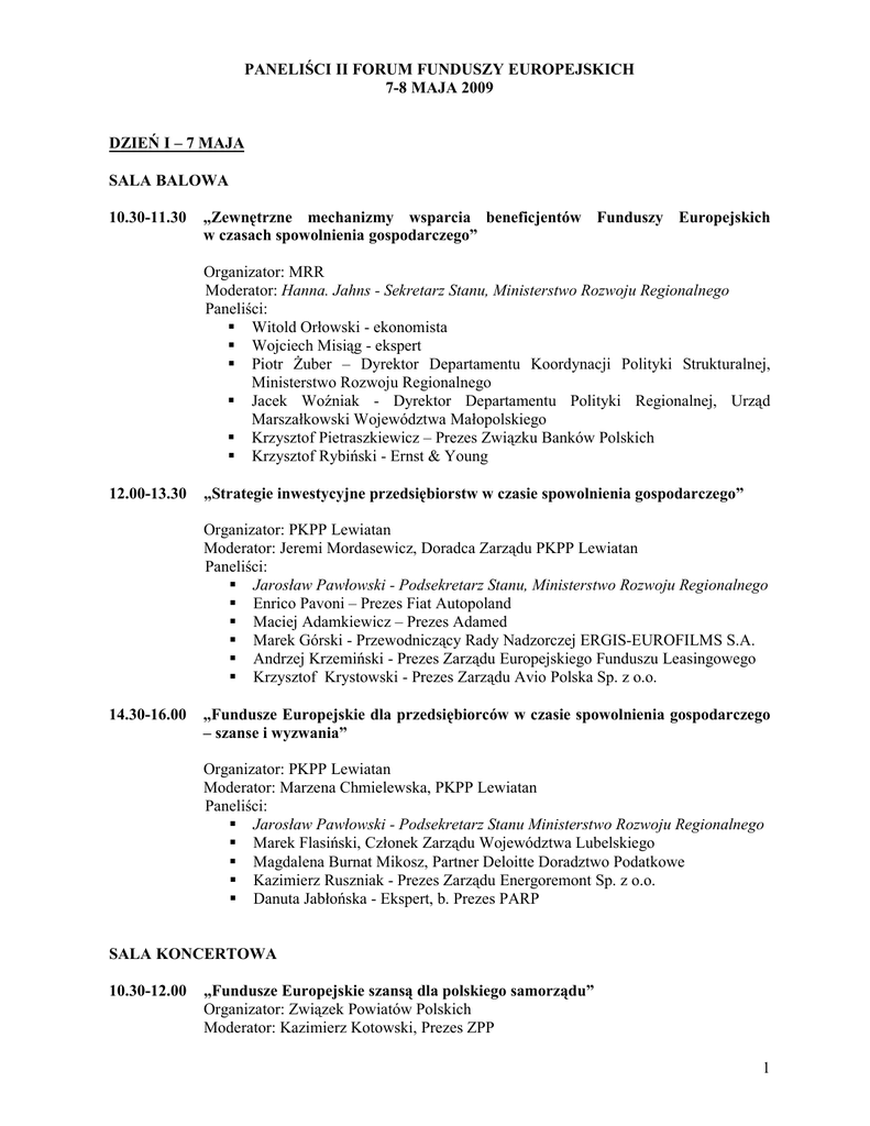 1 PANELIŚCI II FORUM FUNDUSZY EUROPEJSKICH 7