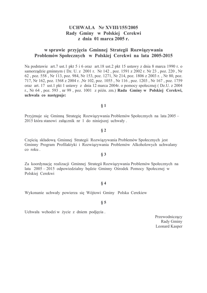 UCHWA˛A Nr XVIII/155/2005 Rady Gminy w Polskiej Cerekwi z dnia