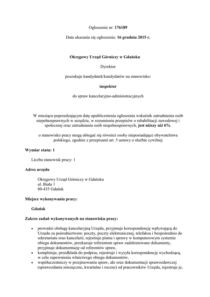 Ogłoszenie nr: 176189 Data ukazania się ogłoszenia: 16 grudnia
