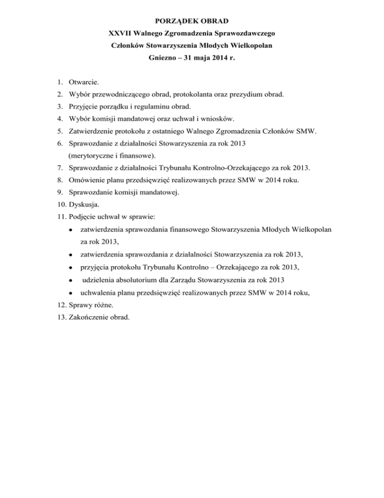 regulamin i porządek obrad - Stowarzyszenie Młodych Wielkopolan