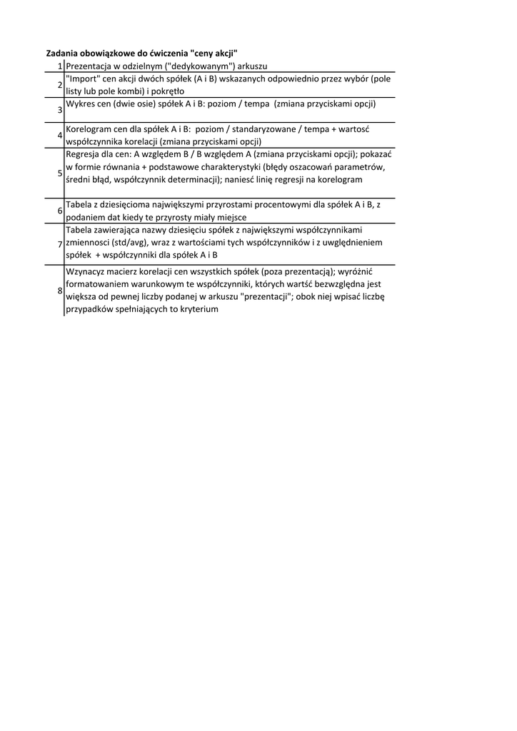 Zadania obowiązkowe do ćwiczenia "ceny akcji"