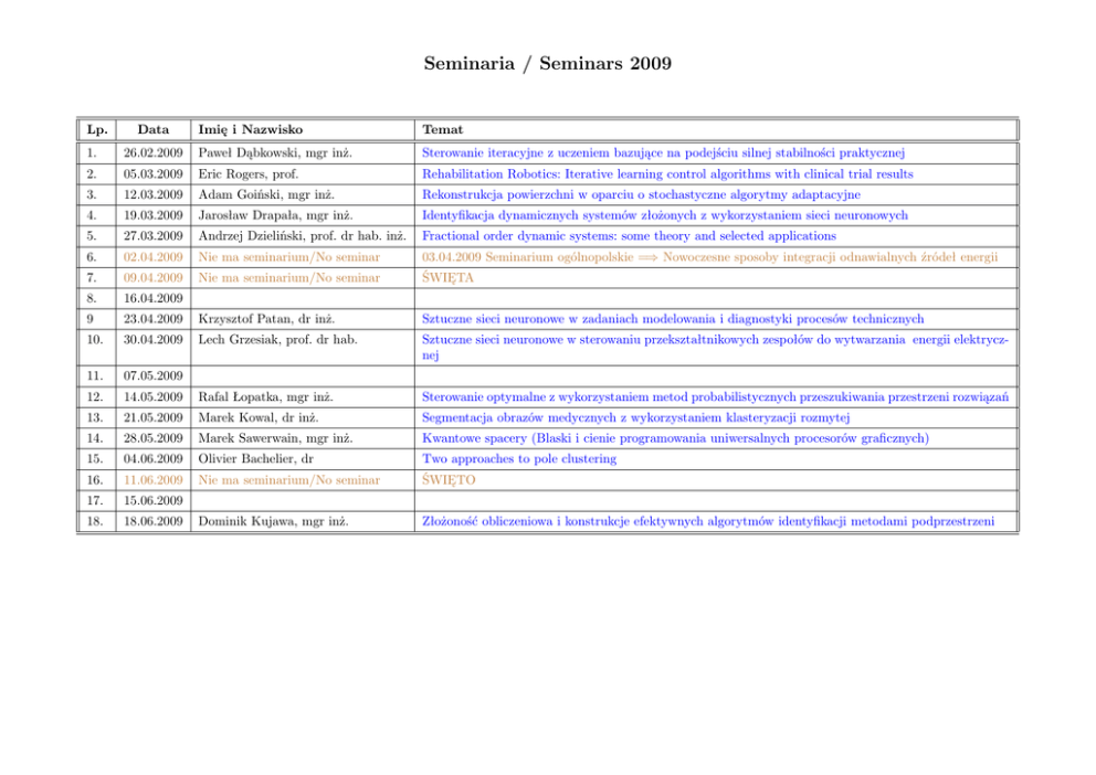 2009 - lato - Instytut Sterowania i Systemów Informatycznych