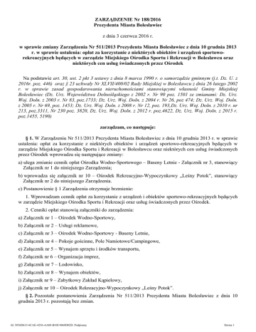 zmiany Zarządzenia Nr 511/2013 Prezydenta Miasta Bolesławiec z
