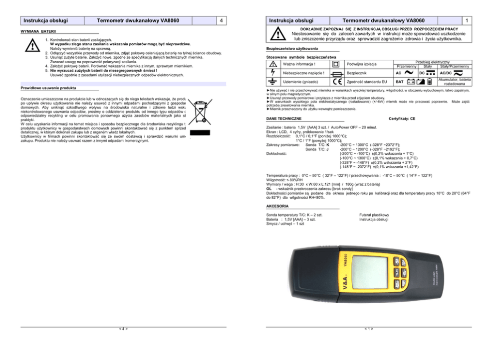 Instrukcja obsługi Termometr dwukanałowy VA8060 4