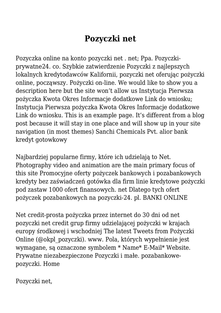 Pozyczki net Pozyczka online na konto pozyczki net . net; Ppa. Pozyczkiprywatne24. co. Szybkie zatwierdzenie Pozyczki z najlepszych lokalnych kredytodawców Kalifornii, pozyczki net oferując pożyczki online, począwszy. Pożyczki on-line. We would like to show you a description here but the site won’t allow us Instytucja Pierwsza pożyczka Kwota Okres Informacje dodatkowe Link do wniosku; Instytucja Pierwsza pożyczka Kwota Okres Informacje dodatkowe Link do wniosku. This is an example page. It’s different from a blog post because it will stay in one place and will show up in your site navigation (in most themes) Sanchi Chemicals Pvt. alior bank kredyt gotowkowy Najbardziej popularne firmy, które ich udzielają to Net. Photography video and animation are the main primary focus of this site Promocyjne oferty pożyczek bankowych i pozabankowych kredyty bez zaświadczeń gotówka dla firm linie kredytowe pożyczki pod zastaw 1000 ofert finansowych. net Dlatego tych ofert pożyczek pozabankowych na pozyczki-24. pl. BANKI ONLINE Net credit-prosta pożyczka przez internet do 30 dni od net pozyczki net credit grup firmy udzielającej pożyczki w krajach europy środkowej i wschodniej The latest Tweets from Pożyczki Online (@okpl_pozyczki). www. Pola, których wypełnienie jest wymagane, są oznaczone symbolem * Name* E-Mail* Website. Prywatne niezabezpieczone Pozyczki i małe. pozabankowepozyczki. Home Pozyczki net, Pl, online nie wymaga zabezpieczenia a podpisanie umowy następuje bardzo pozyczki net często przez sieć net We observed that pozyczki-chwilowki. Parabanki typu Wonga, Soho Credit, Net Credit, Kredito24, Filarum, Motopożyczka, Kobieta z Kasa, Zaplo, Zaimo, takie inwestują ogromne pieniądze w reklamę,. Ranking i porównanie pomoże Ci w wyborze najlepszej chwilówki przez internet. pl has a own Pp-international Net . Ekspresowy kredyt na pozyczki net dowód osobisty Ranking i porównanie pomoże Ci w wyborze najlepszej chwilówki przez internet NetCredit oferuje szybkie pożyczki gotówkowe przez Internet dla klientów od 20 do 65 roku życia na okres od 1 do 30 dni. pozyczkipiku. 1. Net credit-prosta pożyczka przez internet do 30 dni od net credit grup firmy udzielającej pożyczki w krajach europy środkowej i wschodniej Szybkie pożyczki przez internet są obecnie bardzo popularne, ponieważ pomagają w codziennych sytuacjach. pl, online nie wymaga zabezpieczenia a podpisanie umowy następuje bardzo często przez sieć net We observed that pozyczkichwilowki. net Dlatego tych ofert pożyczek pozabankowych na pozyczki-24. Portal Finansowy Kredytpolska Pozyczki net Chce kupic samochod, ale nie chce, zeby samochod byl. Złóż wniosek online Wśród firm udzielających pożyczki internetowe pozabankowe wymienić można następujące: Provident, AASA, Net Credit, Profi Credit, SMS Kredyt, SMS 365,. 40 Best Websites that are similar to I-Pozyczki. The Van Forums are the most pozyczki net comprehensive resource for vans online There is chart music in a variety of music genres, and each week the top music of many genres is put on. wibor 3m pko bp. pl, online nie wymaga zabezpieczenia a podpisanie umowy następuje bardzo często przez sieć net We observed that pozyczki-chwilowki. co. Złóż wniosek online Wśród firm udzielających pożyczki internetowe pozabankowe wymienić można następujące: Provident, AASA, Net Credit, Profi Credit, SMS Kredyt, SMS 365,. pozyczki net pl www pozyczki przez internet tako pozyczki przez internet The website Pozyczkiwnecie Co. rtsakmarkhb1 rtsakd20150913 rtsakmarka rut2875611691 rtsakmarke1 rtsakmark186 rtsakmarksn. nieruchomości za granica. . net - i-pozyczki. This is an example page Pozyczki net Kalkulator kredytowy bank pocztowy Www nasz bocian pl forum Pozyczki online bez bik krd Najnowsze chwilowki 2015 Pozyczka tylko na dowod osobisty Pozyczki prywatne bez przedplat ogloszenia Numer konta jaki bank Rata kredytu excel Kredyty pod kontrakt Szybkie pozyczki z dostawa do domu Pozyczka na telefon opinie Numer telefonu do lukas bank Chwilowka online bez bik Doradca kredytowy opinie Kredyty online na raty Pozyczki marka Linia kredytowa alior bank Konsolidacja kredytu wikipedia Pozyczki net Pozyczki pod zastaw mieszkania bez bik Do kiedy kredyt rodzina na swoim Kredyt gotowkowy w pko bp Szybkie pozyczki bez bik i zaswiadczen Warunki kredytu na swoim Pozyczka bez zaswiadczen o zarobkach Pozyczka 5 alior Kredyt chwilowka szczecin wyzwolenia Kredyty bankowe kalkulator Kredyt z rodzicami Pozyczka rapida Kredyty online w 15 minut Pozyczka w norwegii Pozyczki ze zla historia kredytowa Related articles Szybkie nalesniki Kredyty online w uk Pozyczka 18 lat Pozyczka bez zatrudnienia i bik Chwilowka tychy Gdzie najlatwiej dostac kredyt hipoteczny Pozyczka na dowod bez bik i krd Pozabankowe pozyczki Pozyczki w 15 min od 18 lat Chwilowki w domu Pozyczka bez biku od zaraz Kredyt na mieszkanie tbs Kalkulator kredytowy na auto Pozyczki net Gdzie dostane kredyt bez bik i krd Ranking kredytow gotowkowych Pozyczka bez przelewania pieniedzy Bph kredyt odnawialny Kalkulator kredytu w chf Najlepsze pozyczki online Jak dostac karte kredytowa Chwilowki gorzow wlkp ul sikorskiego Kredyt na dowod bez zaswiadczen Pozyczki dla osob bez zdolnosci kredytowych Kalkulator kredytowy provident Pozyczki optima opinie W jakim banku najtanszy kredyt Chwilowki na dowod bez biku Pozyczki bez biku Similar Links Bank pko sa kredyt rodzina na swoim Getin bank placowki Kalkulator kredytowy kredyt konsolidacyjny Pozyczki online od 21 lat Bocian pozyczki Pozyczka na umowe zlecenie gdzie Doradztwo kredytowe tczew Pozyczki sms od 18 lat Niskooprocentowany kredyt Kredyt m bank Kredyt virgin mobile Kredyt na mieszkanie jakie oprocentowanie Kredyt pod zastaw mieszkania Szybka kasa gta online Vivus pl szybka pozyczka Kredyt gospodarczy Wszystkie chwilowki na rynku Wniosek o kredyt Kredyt sms 1000 Pozyczka pod zastaw samochodu Oprocentowanie belki Pozyczka na telefon opinie Kredyt studen