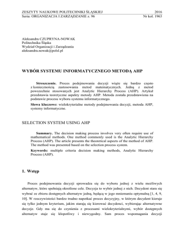 selection system using AHP - Wydział Organizacji i Zarządzania