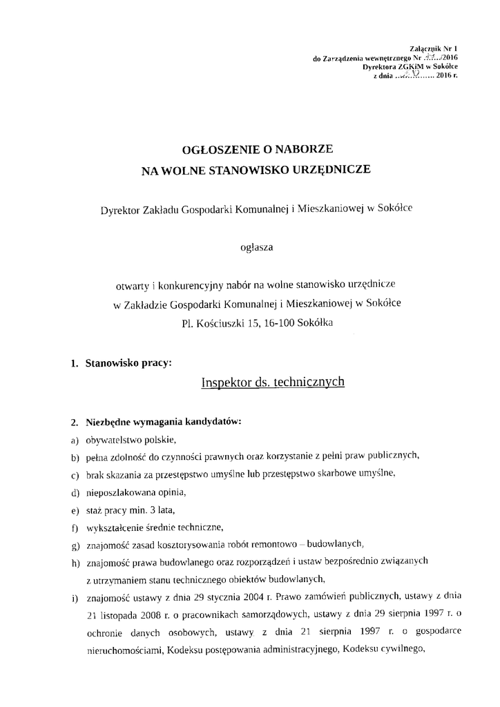 Dyrektor ZakładuGospodarkiKomunalneji Mieszkaniowejw Sokółce
