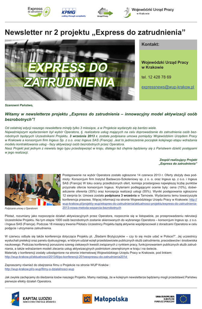 Newsletter nr 2 projektu „Express do zatrudnienia”