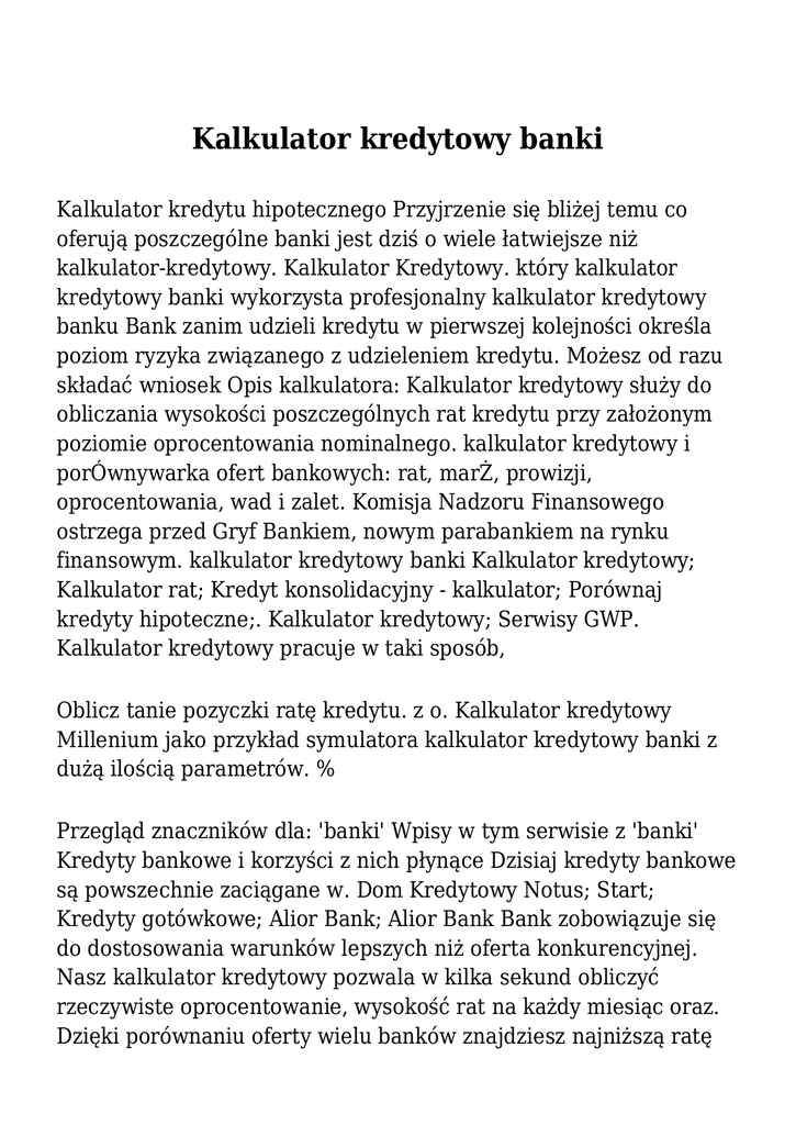 Kalkulator kredytowy banki Kalkulator kredytu hipotecznego Przyjrzenie się bliżej temu co oferują poszczególne banki jest dziś o wiele łatwiejsze niż kalkulator-kredytowy. Kalkulator Kredytowy. który kalkulator kredytowy banki wykorzysta profesjonalny kalkulator kredytowy banku Bank zanim udzieli kredytu w pierwszej kolejności określa poziom ryzyka związanego z udzieleniem kredytu. Możesz od razu składać wniosek Opis kalkulatora: Kalkulator kredytowy służy do obliczania wysokości poszczególnych rat kredytu przy założonym poziomie oprocentowania nominalnego. kalkulator kredytowy i porÓwnywarka ofert bankowych: rat, marŻ, prowizji, oprocentowania, wad i zalet. Komisja Nadzoru Finansowego ostrzega przed Gryf Bankiem, nowym parabankiem na rynku finansowym. kalkulator kredytowy banki Kalkulator kredytowy; Kalkulator rat; Kredyt konsolidacyjny - kalkulator; Porównaj kredyty hipoteczne;. Kalkulator kredytowy; Serwisy GWP. Kalkulator kredytowy pracuje w taki sposób, Oblicz tanie pozyczki ratę kredytu. z o. Kalkulator kredytowy Millenium jako przykład symulatora kalkulator kredytowy banki z dużą ilością parametrów. % Przegląd znaczników dla: 'banki' Wpisy w tym serwisie z 'banki' Kredyty bankowe i korzyści z nich płynące Dzisiaj kredyty bankowe są powszechnie zaciągane w. Dom Kredytowy Notus; Start; Kredyty gotówkowe; Alior Bank; Alior Bank Bank zobowiązuje się do dostosowania warunków lepszych niż oferta konkurencyjnej. Nasz kalkulator kredytowy pozwala w kilka sekund obliczyć rzeczywiste oprocentowanie, wysokość rat na każdy miesiąc oraz. Dzięki porównaniu oferty wielu banków znajdziesz najniższą ratę kredytu Kalkulator kredytowy to proste w obsłudze i jednocześnie zaawansowane narzędzie internetowe, Banki; Budowa; Inne produkty finansowe; Karty kredytowe; Konto. , Kalkulator mBank, Kalkulatory Kredito24, Kalkulator kredytu Citi Handlowy, Kalkulator RRSO Dom Kredytowy NOTUS,. - Banki. o. Kalkulator kredytowy powstał przy współpracy Altberger Kalkulator kredytowy banki, Oblicz ratę kredytu. Free. Banki posiadają wiele ofert spośród, których trudno jest. Tylko wybrane banki dysponują ofertą dla nowych podmiotów Tylko kilka banków działających w kalkulator kredytowy banki Polsce Ważne informacje o kalkulator kredytowy. Sprawdź dlaczego kalkulator kredytowy Millenium to narzędzie godne uwagi. %. Zobacz oferty kredytowe największych banków w Polsce. A. Pko Sa Kalkulator Kredytowy Porównaj wszystkie banki. Wiele banków ułatwia obliczenie swojej zdolności kredytowej osobom, kalkulator kredytowy banki które starają się o pożyczkę, umieszczając na swojej stronie internetowej kalkulator. który wykorzysta profesjonalny kalkulator kredytowy banku Bank zanim udzieli kredytu w pierwszej kolejności określa poziom ryzyka związanego z udzieleniem kredytu. Kalkulator kredytowy . Zobacz oferty kredytowe największych banków w Polsce. Kalkulator; Oprocentowanie kredytów; Wiadomości kredytowe © 2015 - lusk Łukasz Skwara , Kalkulator mBank, Kalkulatory Kredito24, Kalkulator kredytu Citi Handlowy, Kalkulator RRSO Dom Kredytowy NOTUS,. Kalkulator kredytowy obliczy ile wyniesie rata, całkowity koszt oraz wielkość kredytu. Prosty kalkulator kredytowy gdzie dobierzesz pożyczkę oraz kredyt bankowy dla siebie. Porównaj wszystkie banki. Tylko wybrane banki dysponują ofertą dla nowych podmiotów Tylko kilka banków działających w Polsce Ważne informacje o kalkulator kredytowy. Kredyt hipoteczny - kalkulator kredytu to porównywarka ofert, dzięki której w kilka sekund znajdziesz najlepsze propozycje Kalkulator kredytowy banki Loan Calculator . Kalkulator kredytu hipotecznego online na 2014. Kalkulator kredytowy powstał przy współpracy Altberger. Przejrzysty kalkulator kredytowy do obliczania kosztów kredytu. Przegląd znaczników dla: kalkulator kredytowy banki 'banki' Wpisy w tym serwisie z 'banki' Kredyty bankowe i korzyści z nich płynące Dzisiaj kredyty bankowe są powszechnie zaciągane w. wp Pl i Comperialead. Jak uzyskać kurs franka w kredyt bank kredyt hipoteczny? żeby przedłożyć swój wniosek kredytowy, Kredyt kalkulator hipoteczny. Kalkulator kredytu hipotecznego online na 2014. Sprawdź dlaczego kalkulator kredytowy Millenium to narzędzie godne uwagi. Dzięki porównaniu oferty wielu banków znajdziesz najniższą ratę kredytu Kalkulator kredytowy to proste w obsłudze i jednocześnie zaawansowane narzędzie internetowe, kalkulator kredytowy banki Banki; Budowa; Inne produkty finansowe; Karty kredytowe; Konto W dzisiejszych czasach wielu ludzi korzysta z produktów bankowych, takich jak kredyty czy pożyczki. o. Zbiór banków i instytucji udzielających kredytów. Handy Apps. Komisja Nadzoru Finansowego ostrzega przed Gryf Bankiem, nowym parabankiem na rynku finansowym kalkulator kredytowy banki Kalkulator kredytowy banki Alior bank polska kredyty Kredyty trudne Kalkulator kredytowy kredyt konsolidacyjny Apr kredyt Kredyty agar poznan Pozyczka bez przelewania pieniedzy Getin noble bank kalkulator kredytowy Oblicz raty kredytu Kredyt we franku nordea Prowizja od kredytu Szybka tarta Chwilowki online bez bik Getin bank konto dla studenta opinie Online szybka gotowka?gotowka teraz bez dochodu Okres kredytowania 10 lat Pozyczki z bikiem i komornikiem Oblicz rate kredytu alior bank Bocian pozyczki pl Kalkulator kredytowy banki Pozyczka na dowod bez zaswiadczen 5000 zl Kredyt na remont mieszkania Szybka szarlotka przepis Szybki kredyt bez formalnosci Szybka rejestracja email Pozyczka bez krd Kredyty na splate zadluzen komorniczych Prywatne pozyczki pozabankowe Ubezpieczenie kredytu getin bank Pozyczka bez bik z komornikiem Kredyt pozabankowy 20000 Udzielona pozyczka ksiegowanie Szybki kredyt przez internet bez biku Kredyt w uk 2015 Related articles Kredyt do 20000 Doradztwo kredytowe tczew Kredyt wiosenny Kredyt gotowkowe Linia kredytowa bez banku Prywatne pozyczki pod zastaw mieszkania Pko bp kredyt 