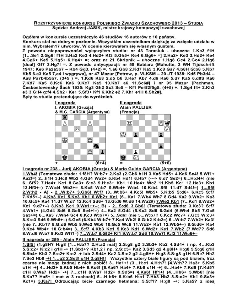 ROZSTRZYGNIĘCIE KONKURSU POLSKIEGO ZWIĄZKU SZACHOWEGO 2013 – STUDIA