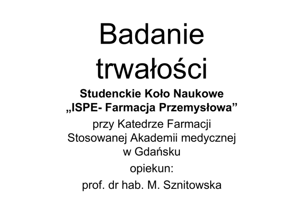 Badanie trwałości - Studenckie Koło Naukowe ISPE