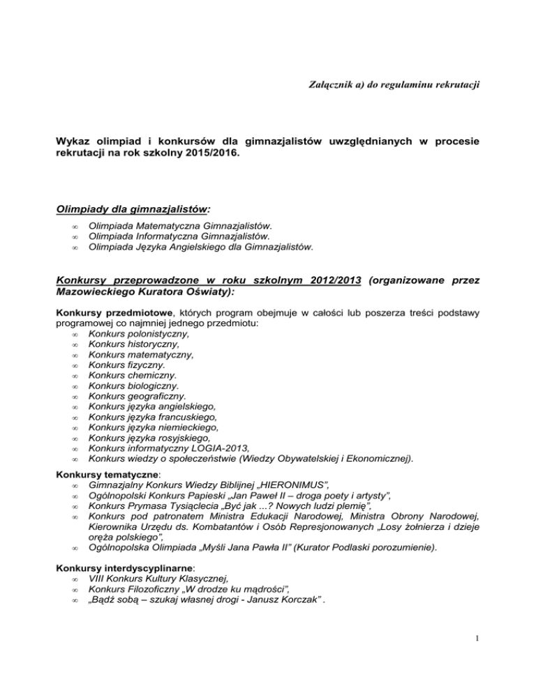 Wykaz olimpiad i konkursów dla gimnazjalistów _załšcznik a–