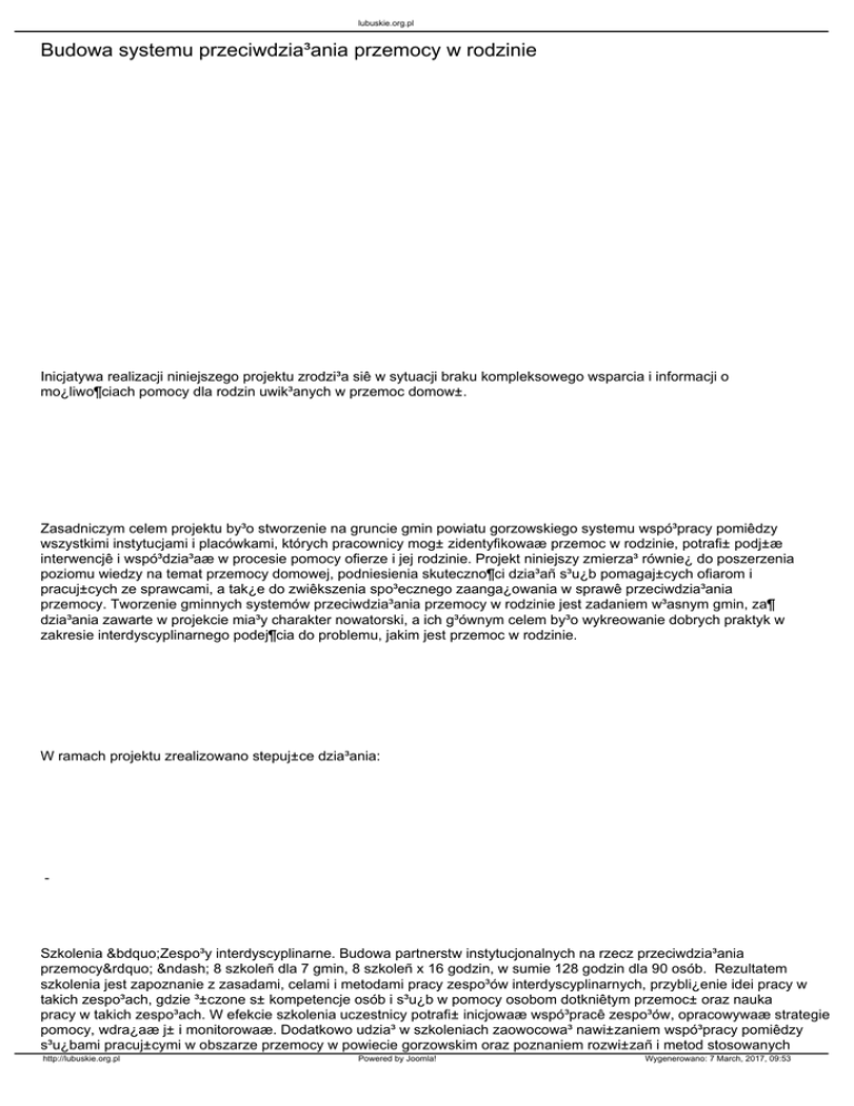 Budowa systemu przeciwdzia³ania przemocy w