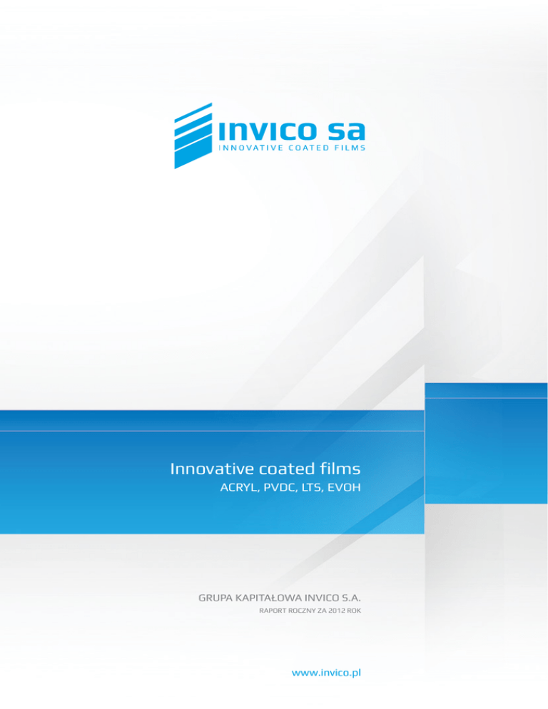 Innovative coated films ACRYL, PVDC, LTS, EVOH GRUPA KAPITAŁOWA INVICO S.A. RAPORT ROCZNY ZA 2012 ROK www.invico.pl GRUPA KAPITAŁOWA INVICO S.A. RAPORT ROCZNY ZA 2012 ROK Tarnowskie Góry, 14 maja 2013r. Spis treści I. LIST PREZESA ZARZĄDU ........................................................................................................................ 3 II. WYBRANE DANE FINANSOWE ............................................................................................................. 4 III. SPRAWOZDANIE FINANSOWE ZA ROK OBROTOWY 2012 ................................................................. 5 IV. SRAWOZDANIE ZARZĄDU Z DZIAŁANOŚCI GRUPY KAPITAŁOWEJ INVICO S.A. ZA 2012 ROK ........... 6 V. OŚWIADCZENIA ZARZĄDU ................................................................................................................. 25 VI. OPINIA I RAPORT BIEGŁEGO REWIDENTA ........................................................................................ 26 2 I. LIST PREZESA ZARZĄDU Szanowni Akcjonariusze, Inwestorzy, Partnerzy, Przekazujemy w Wasze ręce Skonsolidowany Raport Roczny za okres 01.01.2012r. – 31.12.2012r. Z satysfakcją odnotowujemy, iż nasze aktywne działania w roku 2012 na polu realizacji strategicznej inwestycji Invico S.A. polegającej na uruchomieniu ciągłej produkcji wysokojakościowych folii opakowaniowych doprowadziły do rozpoczęcia w roku bieżącym finalnej fazy projektu tj. przekazanie testowo wyprodukowanych produktów Invico do aktualnych i potencjalnych odbiorców, w tym przede wszystkim klientów zagranicznych. W międzyczasie trwają ostatnie prace modyfikacyjne na innowacyjnej powlekarce mające doprowadzić do osiągnięcia pełnych mocy produkcyjnych na przełomie drugiego i trzeciego kwartału br. Strategicznym elementem w budowaniu pozycji Invico S.A. na rynku zagranicznym, mającym prowadzić do znaczącego wzrostu skali działania Spółki i jej wyceny, jest zawarcie w roku 2012 kontraktu o współpracy z podmiotami koncernu Tagleef Industries z siedzibą w Dubaju, Zjednoczone Emiraty Arabskie, największym na świecie producentem folii polipropylenowej (BOPP) wykorzystywanej do produkcji folii opakowaniowych. Kontrakt ma charakter strategicznego aliansu w przedmiocie produkcji i dystrybucji wysokospecjalistycznych folii opakowaniowych Invico. W przedstawionym Państwu roku obrotowym 2012 roku Grupa Kapitałowa Invico S.A. osiągnęła przychody ze sprzedaży w wysokości 43.135 tys. zł, 1.065 tys. zł EBITDA oraz 316 tys. zł zysku netto. Mimo dużej koncentracji działań na realizacji strategicznej inwestycji Invico S.A. Grupa Kapitałowa osiągnęła wzrost ze sprzedaży. Wynik finansowy Grupy Kapitałowej był w dużej mierze obciążony ponoszeniem kosztów związanych z koniecznością wcześniejszego przygotowania infrastruktury rzeczowej, kadrowej i badawczej pod przyszłą produkcję wysokojakościowych folii przez Invico. Dziękujemy za okazywane dotychczas Państwa zaufanie i zapraszamy do zapoznania się ze Skonsolidowanym Raportem Rocznym za rok 2012. Michał Kolmasiak Prezes Zarządu Invico S.A. 3 II. WYBRANE DANE FINANSOWE Pozycje z rachunku zysków i strat przedstawione w Euro przeliczono według kursu stanowiącego średnią arytmetyczną średnich kursów Euro ustalonych przez Narodowy Bank Polski obowiązujących na ostatni dzień każdego zakończonego miesiąca roku obrotowego. 1 EUR = 4,1401 zł dla danych z 2011 r. 1 EUR = 4,1736 zł dla danych z 2012 r. Pozycje bilansowe przedstawione w Euro przeliczono według ogłoszonego przez Narodowy Bank Polski kursu średniego Euro na dany dzień bilansowy 1 EUR = 4,4168 zł dla danych na dzień 31 grudnia 2011 r. 1 EUR = 4,0882 zł dla danych na dzień 31 grudnia 2012 r. w tys. PLN Wyszczególnienie Przychody netto ze sprzedaży produktów, towarów i usług 01.01.201231.12.2012 w tys. EUR 01.01.201131.12.2011 01.01.201231.12.2012 01.01.201131.12.2011 43 135 40 963 10 335 9 894 Zysk ze sprzedaży 555 2 739 133 662 Zysk z działalności operacyjnej 327 2 971 78 718 Zysk brutto 136 2 779 33 671 Zysk netto 316 2 385 76 576 Amortyzacja 738 541 177 131 1 065 3 512 255 848 Aktywa razem 49 741 42 769 12 167 9 683 Aktywa trwałe 32 869 19 030 8 040 4 308 Aktywa obrotowe 16 872 23 740 4 127 5 375 Należności razem 9 162 9 428 2 241 2 135 0 0 0 0 9 162 9 428 2 241 2 135 EBITDA = zysk operacyjny + amortyzacja Należności długoterminowe Należności krótkoterminowe Środki pieniężne i inne aktywa pieniężne 355 5 287 87 1 197 Kapitał własny 23 042 22 724 5 636 5 145 Zobowiązania i rezerwy razem 26 685 20 025 6 527 4 534 Zobowiązanie długoterminowe 8 605 9 247 2 105 2 094 Zobowiązanie krótkoterminowe 17 373 9 923 4 249 2 247 Źródło: Emitent 4 III. SPRAWOZDANIE FINANSOWE ZA ROK OBROTOWY 2012 Sprawozdanie Finansowe Grupy Kapitałowej Invico S.A. za rok obrotowy 2012 stanowi załącznik do niniejszego Raportu Rocznego. 5 IV. SRAWOZDANIE ZARZĄDU Z DZIAŁANOŚCI GRUPY KAPITAŁOWEJ INVICO S.A. ZA 2012 ROK 6 1. Podstawa prawna sporządzenia sprawozdania z działalności jednostki Niniejsze Sprawozdanie Zarządu z działalności Grupy Kapitałowej Invico S.A. w 2012 r. zostało sporządzone na podstawie art. 49 Ustawy z dnia 29 września 1994 r. o rachunkowości (Dz.U. 1994 nr 121 poz. 591 z późn. zm.). 2. Podstawowe informacje o Grupie Kapitałowej Invico S.A. Struktura Grupy Kapitałowej Grupę Kapitałową Invico S.A. tworzą 2 podmioty: spółka dominująca Invico S.A. (dawniej Pragma Trade) oraz spółka zależna Dabex - Grupa Pragma sp. z o.o., w której Emitent posiada 100% udziałów od 30 czerwca 2010 roku. Wcześniej Emitent posiadał 50% udziałów. Invico S.A. („Spółka”, „Emitent”) zajmuje się trzema obszarami działalności: produkcją folii powlekanych, dystrybucją oraz konfekcjonowaniem folii (działalności uzupełniające). Dabex - Grupa Pragma Sp. z o.o. zajmuje się dystrybucją różnych rodzajów papierów higienicznych