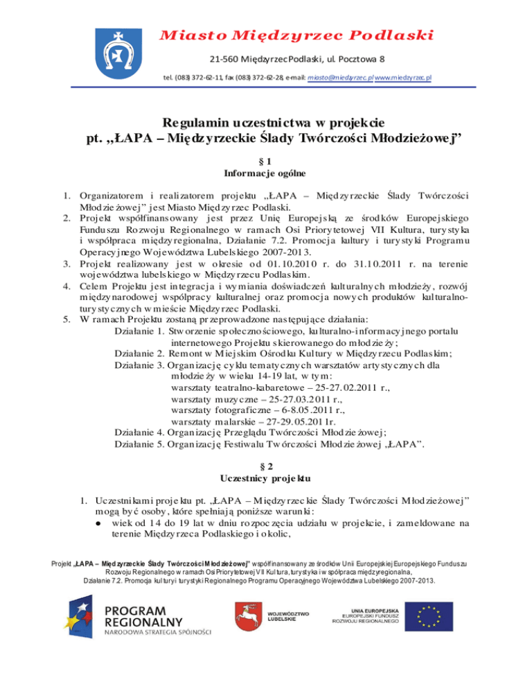 Miasto Międzyrzec Podlaski Regulamin uczestnictwa