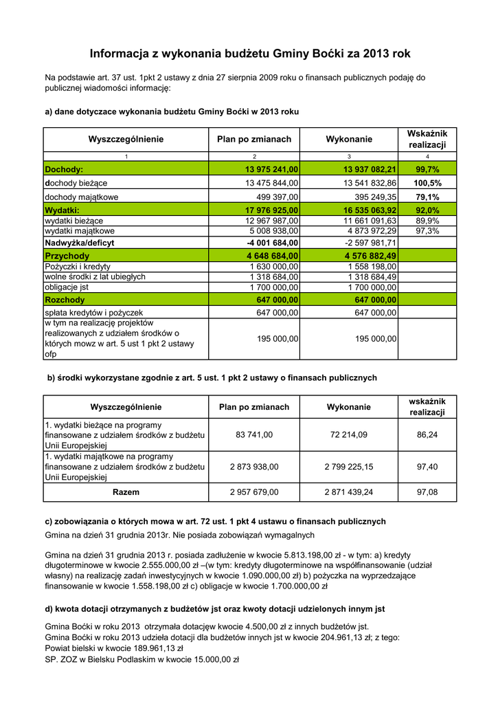 Informacja z wykonania budżetu Gminy Boćki za 2013 rok