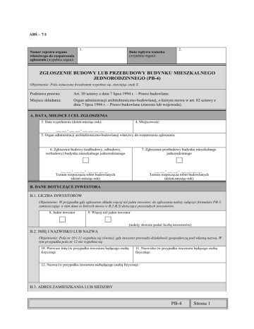 PB-4 Strona 1 ZGŁOSZENIE BUDOWY LUB PRZEBUDOWY