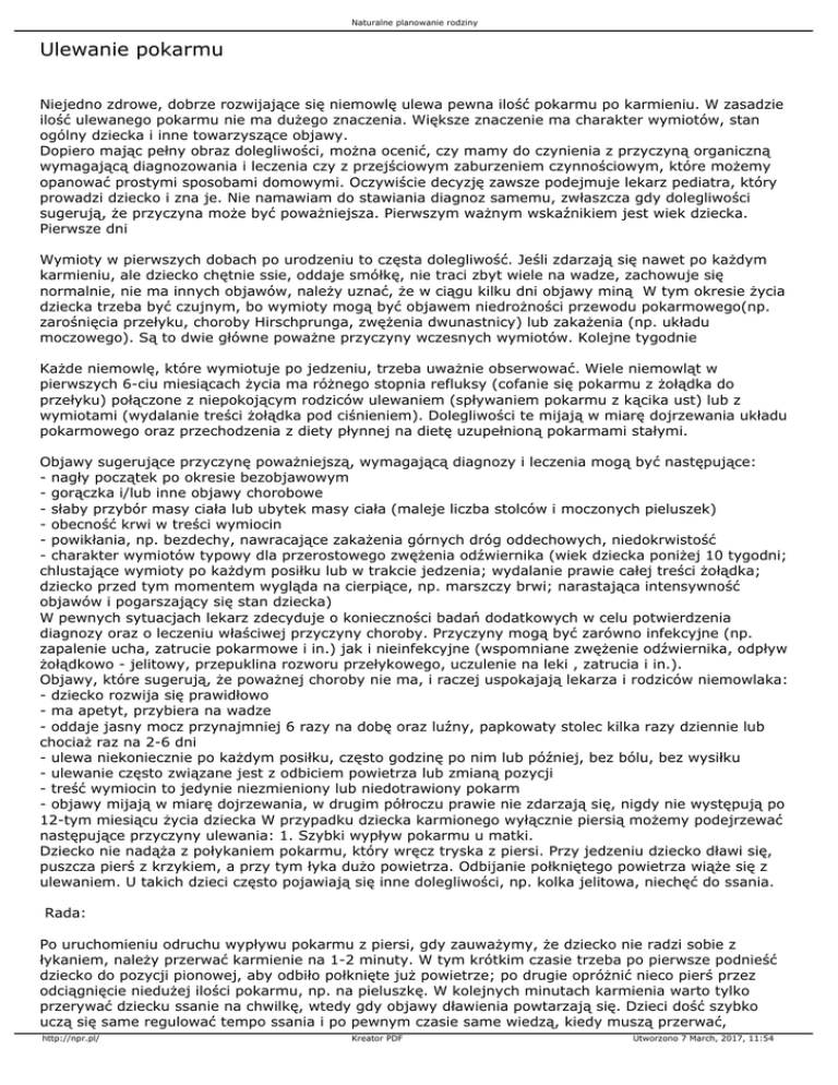 Ulewanie pokarmu - Naturalne planowanie rodziny