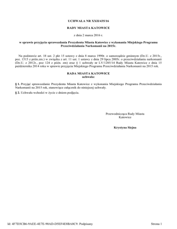 Uchwała nr XXII/435/16 Rady Miasta Katowice z