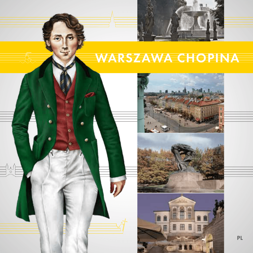 WARSZAWA CHOPINA PL TAMKA IE PR KRAKOWSK ZEDMIEŚCI E SE N O AT RS DO A W KA M IO NOWY ŚWIAT ŚWI ĘTOKRZYSKA STARE MIASTO OLD TOWN DŁ A UG OGRÓD SASKI SAXON GARDEN WA R S Z A WA C H O P I N A W Polsce, Francji, Japonii, Brazylii czy Australii – Fryderyk Chopin znany jest na całym świecie. Warszawa zajęła w sercu kompozytora specjalne miejsce: to właśnie w stolicy zamieszkała rodzina Chopinów niedługo po jego narodzinach i w tym mieście artysta spędził pierwszą połowę swojego 39-letniego życia. W Warszawie rozpoczęła się wielka kariera muzyczna Fryderyka, tu uczył się gry na fortepianie, zachwycał arystokrację podczas koncertów i wzbudzał zainteresowanie stołecznych gazet. Jednocześnie wiódł życie typowego warszawskiego chłopaka: spacerował po Krakowskim Przedmieściu i ul. Miodowej, uczył się języków obcych, umawiał na randki i spotykał ze znajomymi w modnych kawiarniach. Spacerując ulicami Warszawy, w wielu miejscach możesz natknąć się na ślady dawnej obecności Fryderyka Chopina. Skorzystaj z bezpłatnych aplikacji mobilnych oraz strony internetowej i przekonaj się, jak interesująca była i jest Warszawa! ŁAZIENKI KRÓLEWSKIE ŁAZIENKI ROYAL GARDENS AL. UJAZ DOWSK IE SELFIE WITH CHOPIN Choć brzmi to niewiarygodnie, możesz zrobić sobie zdjęcie z Fryderykiem! Wirtualna postać kompozytora czeka na Ciebie między innymi w Ogrodzie Saskim, przy Muzeum Fryderyka Chopina w Warszawie czy w Łazienkach Królewskich. Zrób zdjęcie i podziel się nim w mediach społecznościowych. Pobierz bezpłatną aplikację SELFIE WITH CHOPIN (QR kod na okładce) C H O P I N I N WA R S AW Odkryj Warszawę Chopina z przewodnikiem wykorzystującym technologię rozszerzonej rzeczywistości − Augmented Reality. Dzięki niej zobaczysz Pałac Saski z czasów Fryderyka Chopina, odwiedzisz salonik Chopinów w Pałacu Czapskich (Krasińskich) i przekonasz się, jak zmieniła się Warszawa. Pobierz bezpłatną aplikację C H O P I N I N WA R S AW (QR kod na okładce) M U LT I M E D I A L N E Ł AW E C Z K I W wielu miejscach na trasie znajdziesz multimedialne ławeczki, dzięki którym możesz poznać twórczość Fryderyka Chopina. Zostały one zainstalowane w 2010 r. z okazji 150. rocznicy urodzin kompozytora. Wystarczy nacisnąć guzik, by usłyszeć jeden z utworów. Dowiedz się więcej na: W W W. C H O P I N . WA R S AW T O U R . P L 1 POZNAJ FRYDERYKA CHOPINA W W W .C H O P I N . WA R S AW TOU R.PL Wielu z nas kojarzy Chopina głównie z monumentalnym pomnikiem w Łazienkach Królewskich, na którym zamyślony kompozytor siedzi w cieniu targanej wiatrem wierzby. Warto poznać bliżej tę barwną postać i przekonać się, jak wyglądało życie artysty o międzynarodowej sławie, a zarazem człowieka, który pielęgnował przyjaźnie i którego zainteresowania nie ograniczały się jedynie do muzyki. Chopinowie przeprowadzili się do Warszawy, gdy Frycek miał kilka miesięcy. Miejsce zamieszkania zmieniali kilkukrotnie, lecz ich dom zawsze był położony w okolicach Krakowskiego Przedmieścia, gdzie do dziś tętni życie kulturalne stolicy. W wieku zaledwie sześciu lat Chopin rozpoczął regularną naukę gry na fortepianie, a niewiele później dawał swoje pierwsze koncerty, za każdym razem wzbudzając wielkie uznanie. Nic dziwnego, że pisały o nim stołeczne gazety, skoro skomponował swoje pierwsze utwory jeszcze przed ósmym rokiem życia! Życie Chopina wypełniała nie tylko muzyka. Fryderyk uczył się w Liceum Warszawskim, chodził na dodatkowe zajęcia języka angielskiego, zapraszał swoją pierwszą miłość, Konstancję Gładkowską, na romantyczne spacery i spotykał się ze znajomymi w popularnych kawiarniach. Wakacje spędzał na wsi z przyjaciółmi. Wkrótce po tym, jak ukończył warszawską Szkołę Główną Muzyki, Fryderyk rozpoczął nowy rozdział życia. W 1830 r. kompozytor udał się do Wiednia, gdzie zastała go informacja o wybuchu powstania listopadowego. Chociaż bardzo tęsknił za ukochaną ojczyzną, rodzina przekonała go, by nie wracał do kraju. W 1831 r. Chopin wyjechał do Paryża i szybko znalazł się w kręgu najwybitniejszych osobistości francuskiej stolicy. Mieszkał w Paryżu aż do śmierci. Zmarł w wieku 39 lat, najprawdopodobniej z powodu gruźlicy. Został pochowany na cmentarzu Père Lachaise. Serce Chopina, zgodnie z jego wolą, do Warszawy przywiozła siostra kompozytora, Ludwika. 2 Fryderyk Chopin, Maksymilian Fajans, litografia wg Ary Scheffera, XIX w., źródło NIFC 3 POMNIK FRYDERYKA CHOPINA 1 ŁAZIENKI KRÓLEWSKIE A L . U J A Z D OWS KIE · WWW.LA ZIENKI–KRO LEW S KIE.PL Do pomnika Fryderyka Chopina – usytuowanego naprzeciw bramy Parku przy Al. Ujazdowskich – kieruje swe kroki każdy, kto szuka śladów wielkiego kompozytora. Piękna, masywna bryła autorstwa Wacława Szymanowskiego została zaprojektowana w 1909 r., z myślą o uczczeniu setnej rocznicy urodzin Chopina. Pomnik stanął jednak w Łazienkach Królewskich dopiero w 1926. – pierwotne plany pokrzyżowała I wojna światowa oraz kontrowersje, jakie budził sam projekt. W czasie II wojny światowej pomnik, jako jeden z pierwszych w Warszawie, został przez hitlerowców wysadzony w powietrze. Wiernie zrekonstruowany jest jednym z najważniejszych symboli Warszawy. fot. W. Z.Panów, pzstudio.pl 4 Od ponad 50 lat u stóp pomnika odbywają się Koncerty Chopinowskie. Występy znakomitych pianistów odbywają się w każdą niedzielę, od połowy maja do końca września, o godz. 12.00 i 16.00. Cieszą się popularnością wśród mieszkańców Warszawy oraz turystów i są niepowtarzalną okazją, by posłuchać muzyki klasycznej siedząc na kocu w cieniu drzew. POLONEZ A−DUR OP. 40 NR 1 S E L F IE W IT H CHOP IN fot. W. Z.Panów, pzstudio.pl 5 Łazienki Królewskie przyciągają spacerowiczów o każdej porze roku. Zespół pałacowo–parkowy powstał w XVIII w. jako letnia rezydencja ostatniego króla Polski, Stani
