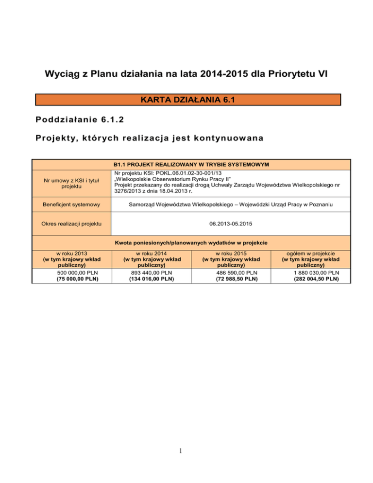 Wyciąg z Planu działania na lata 2014-2015 dla Priorytetu VI