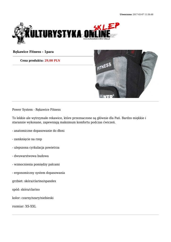 Utworzono: 2017-03-07 11:56:48 Rękawice Fitness - 1para Cena produktu: 29,00 PLN Power System - Rękawice Fitness To lekkie ale wytrzymałe rekawice, które przeznaczone są głównie dla Pań. Bardzo miękkie i starannie wykonane, zapewniają maksimum komfortu podczas ćwiczeń. - anatomiczne dopasowanie do dłoni - zamknięcie na rzep - ulepszona cyrkulacja powietrza - dwuwarstwowa budowa - wzmocnienia pomiędzy palcami - ergonomiczny system dopasowania grzbiet: skóra/clarino/spandex spód: skóra/clarino kolor: czarny/szary/niebieski rozmiar: XS-XXL Adres: http://www.ko.sklep.pl/ Telefon: kom. 782 010 880 Email: [email protected]