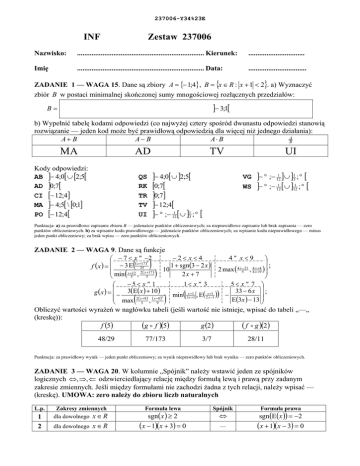 Punktacja: za prawidłowy wynik — jeden punkt obliczeniowy; za wynik nieprawidłowy lub brak wyniku — zero punktów obliczeniowych.