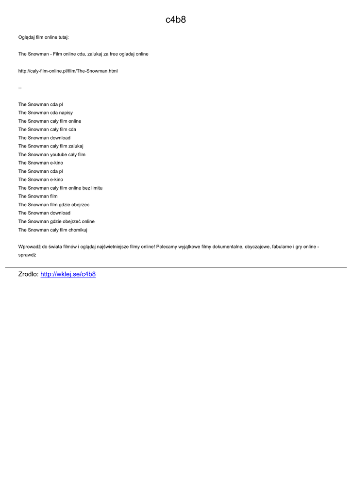c4b8 Oglądaj film online tutaj: The Snowman - Film online cda, zalukaj za free ogladaj online http://caly-film-online.pl/film/The-Snowman.html -The Snowman cda pl The Snowman cda napisy The Snowman cały film online The Snowman cały film cda The Snowman download The Snowman cały film zalukaj The Snowman youtube cały film The Snowman e-kino The Snowman cda pl The Snowman e-kino The Snowman cały film online bez limitu The Snowman film The Snowman film gdzie obejrzec The Snowman download The Snowman gdzie obejrzeć online The Snowman cały film chomikuj Wprowadź do świata filmów i oglądaj najświetniejsze filmy online! Polecamy wyjątkowe filmy dokumentalne, obyczajowe, fabularne i gry online sprawdź Zrodlo: http://wklej.se/c4b8