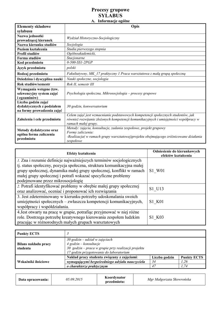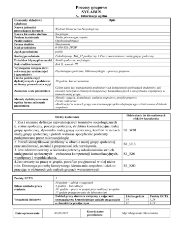 Procesy grupowe SYLABUS