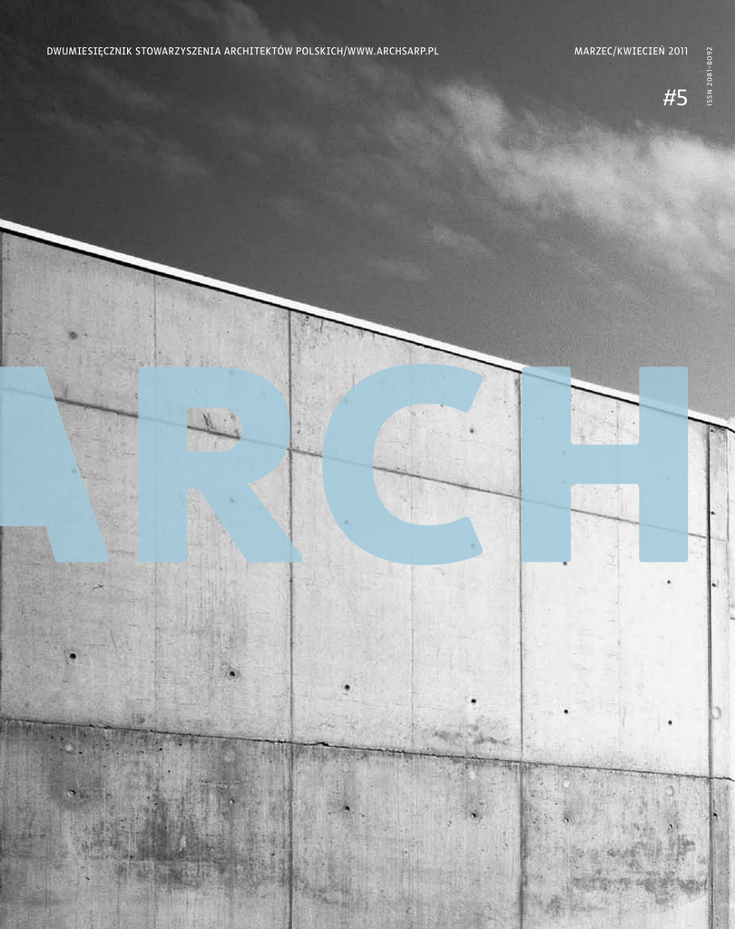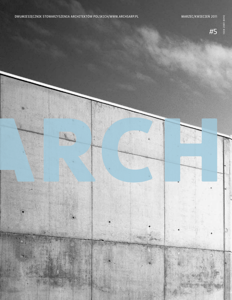 marzec/kwiecień 2011 #5 issn 2081-8092 Dwumiesięcznik Stowarzyszenia Architektów Polskich/ www.archsarp.pl 3 2 W numerze: wydawca stowarzyszenie architektów polskich | sarp 00-950 warszawa ul. foksal 2 5/ 9/ tel. (22) 827 87 12, fax (22) 827 87 13 Kalendarium redaktor naczelna Wydarzenia agnieszka bulanda e-mail: [email protected] 14/ Nagroda Roku sarp 2009 tel. (22) 826 39 31 14 22/ Najlepszy obiekt ze środków publicznych 60 przygotowanie wydania zarząd główny sarp 28/ Polski Cement – nagroda reklama 46/ Nowa siedziba wrtv – konkurs tel. (22) 827 75 39 e-mail: [email protected] 60/ Plac Zabaw / Miejsce zabawy, rekreacji… – konkurs opieka merytoryczna 74/ Specyficzna neutralność – Atelier Kempe Thill 79/ Berlińskie Kadry 82/ Architektoniczne konkursy mają sens – wywiad arch. tomasz studniarek 22 74 projekt graficzny pisma roman kaczmarczyk e-mail: [email protected] 84/ Podróże architekta rysunki artur oleś 86/ Był orędownikiem piękna – druk wspomnienie o ks. abp. Józefie Życińskim drukarnia c.u.d – druk w rudzie śląskiej 88/ Modernizacja parku nakład 6 000 egz. im. Edwarda Szymańskiego 95/ Nowości Książkowe 28 79 Redakcja zastrzega sobie prawo do wprowadzania skrótów w nadsyłanych materiałach oraz do niepublikowania tych materiałów bez podania przyczyn. Redakcja zastrzega sobie prawo adiustacji nadesłanych tekstów. Redakcja nie ponosi odpowiedzialności za treść reklam i ogłoszeń. Wszystkie materiały publikowane w arch są objętę ochroną prawa autorskiego. 46 | # 5 | marzec/kwiecień | 2011 88 okładka: młodzieżowe centrum sportu i edukacji w nowej hucie – kraków / studio architektoniczne wojciech obtułowicz i partnerzy sp. z o.o. foto: archiwum biuro architektoniczne wojciech obtułowicz i partnerzy. | # 5 | marzec/kwiecień | 2011 5 4 Edytorial Architektura, krajobraz, przestrzeń wokół nas to elementy nierozerwalnie związane z naszą egzystencją. To truizm, ale jaka jest związana z tym świadomość społeczna? Centrum Badania Opinii Społecznej od paru już lat regularnie przeprowadza wśród Polaków badania na ten temat. Jak Polacy mieszkają, a jak chcieliby mieszkać, co sądzą o polskiej architekturze… Zajrzałam do ostatnich badań przeprowadzonych przez cbos w październiku ub. r. i z nieukrywaną przyjemnością przeczytałam, że zdecydowana większość ankietowanych (82 %) interesuje się wyglądem przestrzeni publicznej, w której żyją. Niemal jedna trzecia deklaruje, że kwestia wyglądu najbliższego otoczenia jest dla nich bardzo istotna. Mniej niż jedna piąta badanych nie zwraca uwagi na otaczającą przestrzeń i jak można sądzić, jest im raczej obojętne, co, jak i gdzie się buduje. Wychowana w „architektonicznym” domu i całe dorosłe życie związana z architekturą, mam niejako we krwi umiłowanie piękna otaczającej mnie przestrzeni i szacunek dla niej oraz tych, którzy ją tworzą. Boli mnie, gdy wyburzane są znakomite obiekty architektury np. modernistycznej, tylko po to, by ustąpić miejsca nowemu, niekoniecznie lepszemu… Gdy urzędnicy, konserwatorzy i inne odpowiedzialne służby dają ciche przyzwolenie na niszczenie naszego dziedzictwa. Jednocześnie cieszy powstająca nowa, świetna architektura, doceniana nie tylko w kraju ale i poza jego granicami, jak choćby budynek wrocławskiej Renomy obsypany deszczem zasłużonych nagród, w tym ostatniej – Nagrody Roku. Wielokrotnie życzyłam Państwu, byście umieli znaleźć chwilę dla siebie na wyhamowanie, na dostrzeganie tego co piękne… Tak się złożyło, że i mnie został dany taki czas. Wykorzystałam go na uporządkowanie pewnych spraw, na zaległe lektury… Wiosna to znakomity moment by rozejrzeć się wokół, cieszyć się słońcem, rozkwitającą przyrodą… Przez ostatnich 5 miesięcy z mojej sali rehabilitacyjnej miałam piękny widok na budynek (również nagrodzonej w ubiegłych latach) Spectry autorstwa pracowni jems, ze stojącą przed nim rzeźbą Mitoraja. Po raz kolejny uświadomiłam sobie, jak niezwykle ważna jest otaczająca nas przestrzeń i jak uzdrawiający wręcz wpływ może mieć na nasze zmysły. Agnieszka Bulanda | # 5 | marzec/kwiecień | 2011 1 wystawa – dagarama. powrót do przyszłości. futurystyczne projekty jana głuszaka termin: 31.03.2011 – 22.05.2011 miejsce: muzeum architektury, wrocław, ul. bernardyńska 5 programowe błyskawicznej komunikacji kolejowej tranzytowej, fundamentalnej dla dalszej pracy nad modelem nowoczesnego miasta. I właśnie tutaj, w Krakowie, Jan Głuszak, utalentowany dziewiętnastolatek z Tarnowa, rozpoczyna swoją architektoniczną przygodę. Studiów architektonicznych – ze względu na chorobę – nie ukończy, ale kilka lat spędzonych na uczelni i docierający tutaj ze świata ożywczy ferment pomogą mu skrystalizować własną drogę twórczą. Architektura, obok poezji i filozofii, pozostanie pasją i sensem jego życia. Romantyk i idealista, profesji architekta – choć sam siebie uważał za antyarchitekta – przydawał najwyższą rangę. W osobie pełniącej tę odpowiedzialną misję chciał widzieć przede wszystkim myśliciela i humanistę, wrażliwego obserwatora życia, a także interpretatora ludzkich potrzeb i marzeń, którym potrafi nadać odpowiednią formę. Pisał: „Moim domem jest nie tylko to, co stanowi moje schronienie, moim domem jest cały wszechświat, bo w nim mieszkam myślą i marzeniem”. Najważniejszą inspiratorką i nauczycielką była dla Jana Głuszaka przyroda. To w niej szukał uniwersalnych wzorców i rozwiązań, podziwiał jej konstrukcyjną i funkcjonalną logikę, harmonię i piękno. W manifeście Architektura a budowa obiektów naturalnych pisał: „Niedoścignioną architekturę posiadają układy naturalne zwierzęce i roślinne, a także układy, w które są ukształtowane różne rodzaje materii nieożywionej”. W 1968 roku twórczość Jana Głuszaka została przedstawiona s