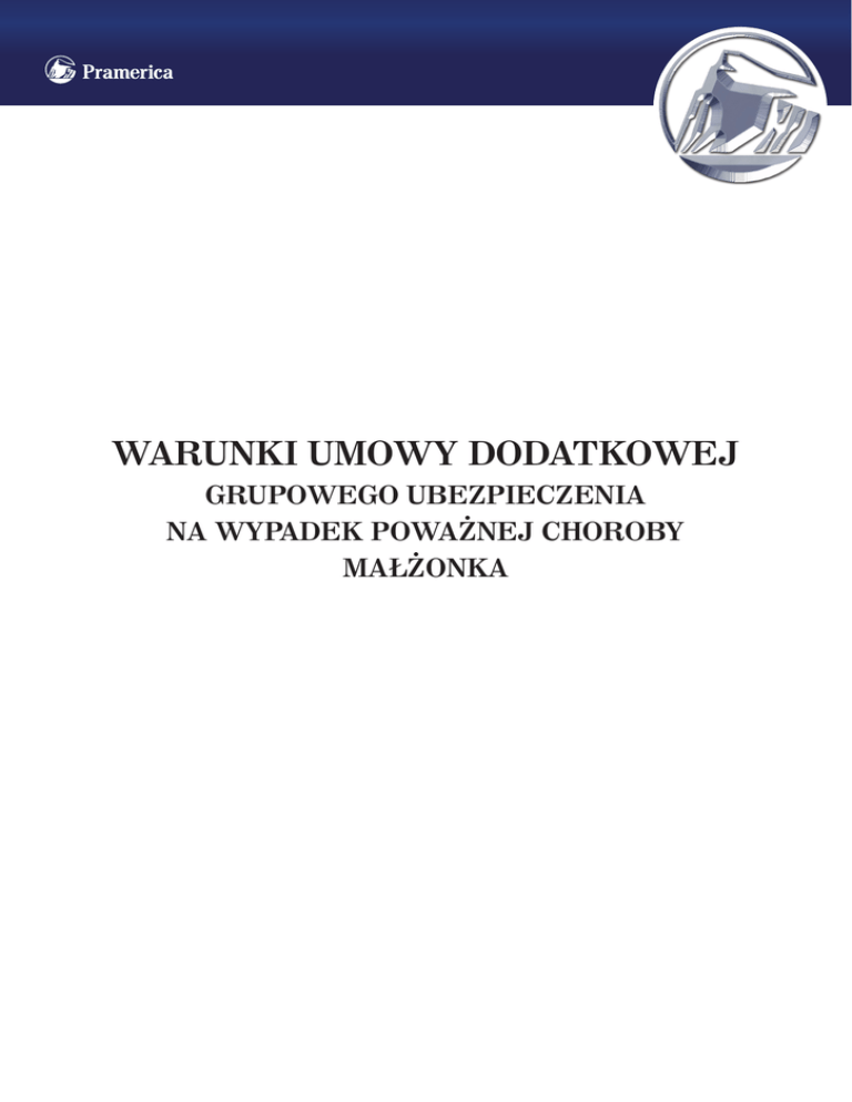 WARUNKI UMOWY DODATKOWEJ GRUPOWEGO UBEZPIECZENIA NA WYPADEK POWA˚NEJ CHOROBY MAŁ˚ONKA WARUNKI UMOWY DODATKOWEJ GRUPOWEGO UBEZPIECZENIA NA WYPADEK POWA˚NEJ CHOROBY MAŁ˚ONKA POSTANOWIENIA OGÓLNE §1 Postanowienia niniejszych Warunków Umowy Dodatkowej Grupowego Ubezpieczenia na Wypadek Poważnej Choroby Małżonka (zwanych dalej Warunkami) stanowią rozszerzenie zakresu ochrony ubezpieczeniowej udzielanej na podstawie Ogólnych Warunków Grupowego Ubezpieczenia na Życie (zwanych dalej OWU). DEFINICJE §2 Użytym w niniejszych Warunkach określeniom nadaje się znaczenie przyjęte w OWU. Na potrzeby niniejszych Warunków wymienione poniżej terminy mają następujące znaczenia: 1.Umowa Dodatkowa – Umowa ubezpieczenia zawierana na podstawie niniejszych Warunków łącznie z Umową Podstawową lub w trakcie jej obowiązywania jako rozszerzenie Umowy Podstawowej, na podstawie pisemnego wniosku Ubezpieczającego, pod warunkiem zaakceptowania powyższego wniosku przez Pramerica Życie TUiR SA; 2.Małżonek – osoba, która w rozumieniu polskiego prawa pozostaje w związku małżeńskim z Ubezpieczonym w dniu zajścia zdarzenia ubezpieczeniowego; 3.Poważna Choroba – każde ze zdarzeń zdefiniowanych w § 3, stwierdzone przez lekarzy posiadających odpowiednią specjalizację, z zastrzeżeniem wyłączeń i dodatkowych warunków zawartych przy poszczególnych definicjach; 4.Nieszczęśliwy Wypadek – nagłe, zewnętrzne, niezależne od woli i stanu zdrowia Małżonka zdarzenie będące bezpośrednią i jedyną przyczyną fizycznych obrażeń ciała u Małżonka, niemające bezpośredniego lub pośredniego źródła w jakimkolwiek fizycznym lub psychicznym schorzeniu Małżonka. Za Nieszczęśliwy Wypadek nie uważa się zawału, wylewu krwi, udaru, zatrucia oraz wszelkich innych chorób lub infekcji (w tym występujących nagle). DEFINICJE ZDARZEŃ OBJĘTYCH OCHRONĄ W RAMACH NINIEJSZEJ UMOWY DODATKOWEJ §3 1.Wyłącznie taka Całkowita utrata wzroku (ślepota), która oznacza potwierdzone, klinicznie nieodwracalne osłabienie wzroku w obojgu oczach. Ostrość wzroku oceniana przy użyciu np. testów Snellena w obojgu oczach po korekcji musi być niższa niż 6/60 lub 20/200, lub musi zostać stwierdzone ograniczenie pola widzenia w obojgu oczach do nie więcej niż 20°. Świadczenie nie będzie należne, jeśli według opinii lekarzy Małżonek może całkowicie lub częściowo odzyskać wzrok dzięki zastosowaniu urządzenia medycznego lub wszczepieniu implantu. 2.Wyłącznie taka Choroba Crohna, która oznacza przewlekłe, nieswoiste zapalenie jelita wykazujące skłonność do ziarninowania. Świadczenie będzie należne, jeśli w wyniku Choroby Crohna dojdzie do wytworzenia przetoki, niedrożności lub perforacji jelita, a rozpoznanie zostanie potwierdzone charakterystycznym obrazem histopatologicznym. 3.Wyłącznie taka Choroba neuronu ruchowego, która oznacza postępujące zwyrodnienie dróg korowo-rdzeniowych z zanikiem komórek rogów przednich rdzenia lub uszkodzeniem nerwów opuszki. Choroba neuronu ruchowego obejmuje takie jednostki, jak: rdzeniowy zanik mięśni (ang. spinal muscular atrophy, SMA), postępujące porażenie opuszkowe (ang. progressive bulbar palsy, PBP), stwardnienie zanikowe boczne (ang. amyotrophic lateral sclerosis, ALS) oraz pierwotne stwardnienie boczne (ang. primary lateral sclerosis, PLS). Świadczenie będzie należne, jeśli choroba neuronu ruchowego spowoduje deficyt neurologiczny skutkujący trwałą i nieodwracalną niezdolnością Małżonka do: a) poruszania się między pomieszczeniami na poziomie jednej kondygnacji lub b) samodzielnego spożywania przygotowanych i podanych posiłków. 4.Wyłącznie taka Choroba Parkinsona, która oznacza wolno postępującą chorobę zwyrodnieniową ośrodkowego układu nerwowego przebiegającą z zajęciem neuronów tych obszarów mózgu, które odpowiadają za zmniejszenie poziomu dopaminy w mózgu (neurony dopaminergiczne). Rozpoznanie Choroby Parkinsona musi być jednoznaczne, a jednocześnie muszą zostać spełnione wszystkie wymienione niżej warunki: a)brak odpowiedzi organizmu na leczenie farmakologiczne; b)objawy postępującego upośledzenia sprawności organizmu; c)obecność deficytów neurologicznych powodujących trwałą i nieodwracalną niezdolność Małżonka do poruszania się między pomieszczeniami na poziomie jednej kondygnacji. 5.Wyłącznie takie Ciężkie oparzenie, które oznacza uszkodzenie tkanek spowodowane działaniem czynników cieplnych, chemicznych lub elektrycznych, w wyniku których dojdzie do oparzenia trzeciego stopnia lub na głębokość obejmującą całą grubość tkanki, o rozległości obejmującej co najmniej 20% powierzchni ciała ocenianej według „reguły dziewiątek”, lub tablicy Lunda i Browdera. 6.Wyłącznie taka Dystrofia mięśni, która oznacza grupę genetycznie uwarunkowanych miopatii o charakterze zwyrodnieniowym, cechujących się osłabieniem i zanikiem mięśni przebiegających bez zajęcia układu nerwowego. W odniesieniu do niniejszej Umowy Dodatkowej, świadczenie będzie należne, jeśli u Małżonka zostanie rozpoznana Dystrofia mięśni powodująca wystąpienie deficytu neurologicznego, którego następstwem jest trwała i nieodwracalna niezdolność Małżonka do poruszania się między pomieszczeniami na poziomie jednej kondygnacji. 7.Wyłącznie taki Łagodny (niezłośliwy) guz mózgu, który oznacza obecność zagrażającego życiu, niezłośliwego guza w obrębie tkanki mózgowej, z towarzyszącymi objawami wzmożonego ciśnienia śródczaszkowego, w postaci obrzęku tarczy nerwu wzrokowego (tarcza zastoinowa), występowania napadów padaczkowych lub istnienia czynnościowych ubytków neurologicznych. Rozpoznanie musi zostać potwierdzone przez specjalistę w dziedzinie neurologii i udokumentowane wynikami badań obrazowych, takich jak: tomografia komputerowa (CT), magnetyczny rezonans jądrowy (NMR) lub pozytronowa tomograf