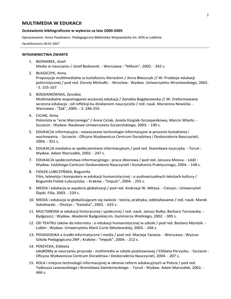 multimedia w edukacji - Elektroniczna Biblioteka Pedagogiczna