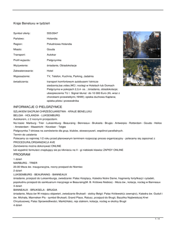 SZLAKIEM SACRUM CHRZEŚCIJAŃSTWA - KRAJE BENELUXU