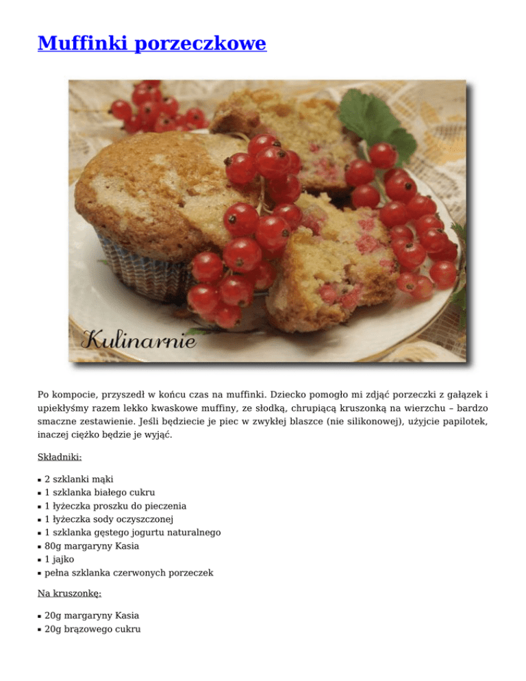 Muffinki porzeczkowe,Ciastka francuskie z budyniem,Owsiane