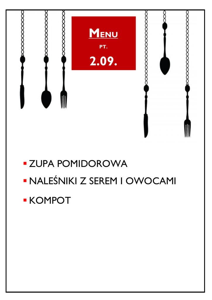 MENU PT. 2.09. ZUPA POMIDOROWA NALEŚNIKI Z SEREM I OWOCAMI KOMPOT