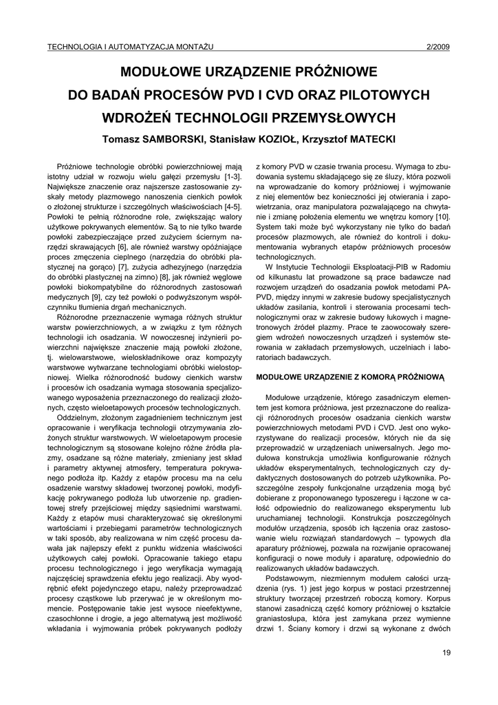 MODUŁOWE URZĄDZENIE PRÓśNIOWE DO BADAŃ PROCESÓW