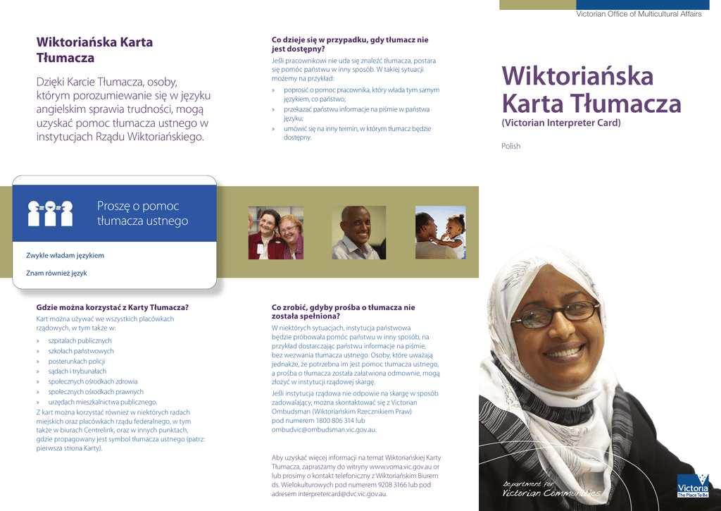 Wiktoriańska Karta Tłumacza - Victorian Multicultural Commission