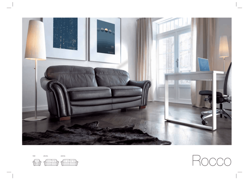 fotel sofa 2os. sofa 3os. Rocco wer.2-10/11 obicie • różnice skóra/tkanina tkaniny (wzorzyste) możliwość łączenia (skóra/tkanina) blenda charakterystyka mebla • miękki średnio miękki twardy materac – bonele nóżki • drewniane plastikowe metalowe akcesoria opcjonalne półka zagłówek drewno (szatoza) funkcje ruchome elementy funkcja spania belgijka pojemnik na pościel sofa 2os. H:94 101 101 101 wys. siedziska - 52 220 180 122 H:94 sofa 3os. H:94 * obicie skóra - plecy dzielone obicie tkanina - plecy w całości fotel pow. spania 138x185 Rocco