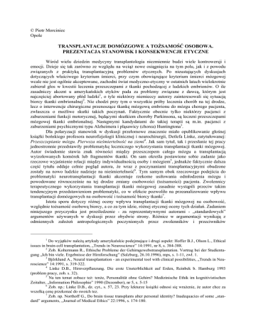 transplantacji tkanki mózgowej. Istotnym pojęciem w tamtych dyskusjach było pojęcie „tożsamości