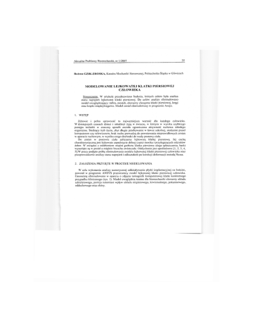 Aktualne Problemy Biomechaniki, nr 1/2007 35 Bożena GZIK-ZROSKA, Katedra Mechaniki Stosowanej, Politechnika Śląska w Gliwicach MODELOWANIE LEJKOWATEJ KLATKI PIERSIOWEJ CZŁOWIEKA Streszczenie. W artykule przedstawiono badania, których celem była analiza stanu naprężeń lejkowatej klatki piersiowej. Do celów analizy sformułowano model uwzględniający: żebra, mostek, elementy chrzęstne klatki piersiowej, kręgi oraz krążki międzykręgowe. Model został sformułowany w programie Ansys. 1. WSTĘP Zdrowie i pełna sprawność to najważniejsza wartość dla każdego człowieka. W dzisiejszych czasach dzieci i młodzież żyją w świecie, w którym w wyniku szybkiego postępu techniki w znaczny sposób została ograniczona aktywność ruchowa młodego organizmu. Siedzący tryb życia, zbyt długie przebywanie w ławce szkolnej, siedzenie przed komputerem czy telewizorem, brak ruchu prowadzą do powstawania nieprawidłowych zmian w aparacie ruchowym, w wyniku czego dochodzi do wady postawy ciała. Do zmian w postawie ciała zaliczamy lejkowatą klatkę piersiową. Jej cechą charakterystyczną jest lejkowate zapadnięcie dolnej części mostka i przylegających odcinków żeber. W związku z osłabieniem mięśni grzbietu klatka piersiowa ulega spłaszczeniu, barki wysunięte są w przód a mięśnie brzucha zwiotczałe. Oddychanie jest upośledzone [1, 2, 3, 4, 5].W pracy podjęto próbę sformułowania modelu lejkowatej klatki piersiowej człowieka oraz przeprowadzenie analizy stanu naprężeń i odkształceń po korekcji deformacji metodą Nussa. 2. ZAŁOŻENIA PRZYJĘTE W PROCESIE MODELOWANIA W celu wykonania analizy numerycznej oddziaływania płytki implantacyjnej na kościec, powstał w programie ANSYS przestrzenny model lejkowatej klatki piersiowej człowieka. Geometrię sformułowano w oparciu o zdjęcia tomografii komputerowej klatki konkretnego przypadku klinicznego (rys. 1). Model uwzględnia istotne dla biomechaniki elementy układu szkieletowego, pomija natomiast wpływ układu mięśniowego, krwionośnego, pokarmowego, oddechowego oraz skóry. 36 B. Gzik-Zroska Rys. 1.Obraz tomografii komputerowej lejkowatej klatki piersiowej Model (rys.2 jsformułowano w oparciu o następujących założenia [1]: • kręgi, żebra, mostek traktuje się jako ciała jednorodne o własnościach izotropowych odzwierciedlających rzeczywistą geometrię, • model uwzględnia dyski, stawy międzykręgowe oraz stawy łączące żebra z kręgami o charakterystyce materiału liniowo - sprężystej odpowiadającej uśrednionej wartości odpowiednich tkanek biologicznych, • płyta stabilizująca została połączona z żebrami poprzez wspólne węzły, • pominięto ciśnienie panującego wewnątrz klatki piersiowej oraz wpływ organów wewnętrznych, • warunki brzegowe przyjęto zgodnie z warunkami badań doświadczalnych, • dobór optymalnego kształtu płytki stabilizującej przeprowadzono dla jednego przepadku klinicznego. Rys. 2. Model lejkowatej klatki piersiowej 3. SYMULACJE NUMERYCZNE Symulacje numeryczne przeprowadzono w celu określenia siły jaką trzeba zadziałać na lejkowatą klatkę piersiową aby dokonać korekcji wady oraz w celu zbadania naprężeń i odkształceń, jakie pojawiają się na skutek wprowadzenia płyty implantacyjnej. R 4. Model klatki piersiowej przed stabilizacją s. 4. Model klatki piersiowej po stabilizacji ń i odkształceń w modelu lejkowatej klatki piersiowej Rys. 5. Wielkości przemieszczeń Rys . 6 Wielkość naprężeń w modelu z p ł y t ą stabilizującą 38 4. B. Gzik-Zroska PODSUMOWANIE W pracy przedstawiono przestrzenny model lejkowatej klatki piersiowej człowieka, na podstawie którego wyznaczono wartości sił oddziaływujących na płytkę wykorzystywaną do korekcji wad klatki piersiowej. Otrzymane wyniki posłużą do optymalizacji wymiarów geometrycznych implantu, która zostanie przeprowadzona na podstawie parametrycznego modelu płytki stabilizującej umożliwiającego szybką zmianę geometrii oraz parametrów materiałowych. Opracowany model klatki piersiowej może również posłużyć do analizy naprężeń i odkształceń jakie mogą się pojawić w żebrach i mostku w trakcie implantacji. LITERATURA [1] Correira de Matos, Bernardo E. J., Fernandese E. J (1997) Surgery of chest wall deformities. European Journal of Cardio-thoracic Surgery, 12. [2] Gzik-Zroska Bożena.: Biomechaniczne aspekty modelowania klatki piersiowej człowieka, Zeszyty Naukowe Katedry Mechaniki Stosowanej, tom 27, str. 62-65. Gliwice 2005. [3] Jacobs P. J., Quintessenze J. A., Moreli V. O., Botero L. M., van Gelder H. M., Tchervenkov C. I., (2002) Minimally invasive endoscopic repair of pectus excavatum. European Journal of Cardio-thoracic Surgery 21. [4] Kacprzak G., Kołodziej J.: Klatka piersiowa lejkowata - patomorfologia, objawy, diagnostyka, wskazania do operacji Polski Przegląd Chirurgiczny 2005, 77 ,1 , 82-91. [5] Rzechonek A„ Kołodziej J.: Leczenie lejkowatej klatki piersiowej sposobem Nussa porównanie z metodą Ravitcha Family Medicine Primary Care Review 2005, 7, 2: 144148. MODELLING OF HUMAN'S FUNNEL CHEST Summary. In this paper researcher concern analysis of stress of funnel chest are presented. For this purpose war created model , taking into considerations: ribs, sternum, cartilage connections, vertebrae and intervertebral discs. The model is formulated in Ansys program.