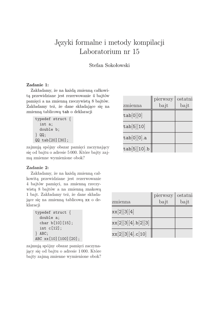 Języki formalne i metody kompilacji Laboratorium nr 15