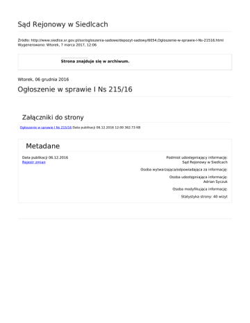 Sąd Rejonowy w Siedlcach Ogłoszenie w sprawie I Ns 215/16