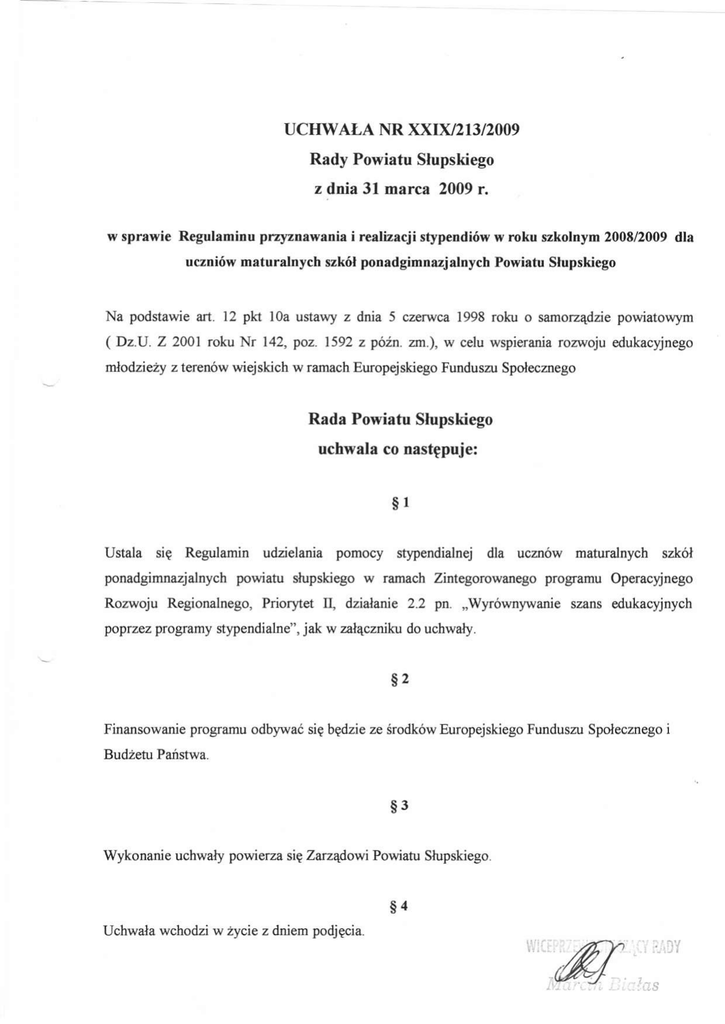 Ustala się Regulamin udzielańa pomocy stypendialnejdla uczrrów maturalnych szkoł