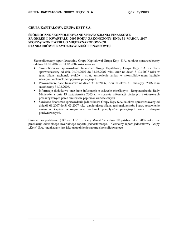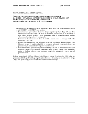 GRUPA KAPITAŁOWA GRUPY KĘTY S.A. QSr I/2007 1