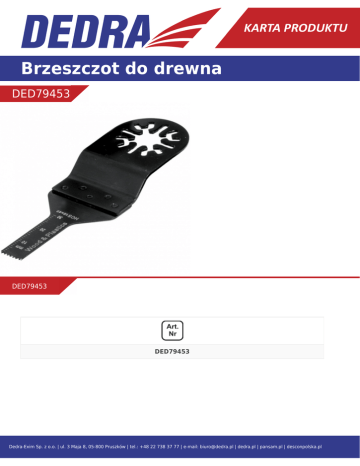 Brzeszczot do drewna DED79453 DED79453 DED79453 Dedra-Exim Sp. z o.o. | ul. 3 Maja 8, 05-800 Pruszków | tel.: +48 22 738 37 77 | e-mail: [email protected] | dedra.pl | pansam.pl | desconpolska.pl
