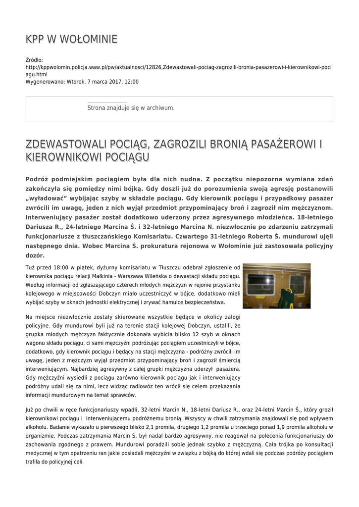 KPP W WOŁOMINIE ZDEWASTOWALI POCIĄG, ZAGROZILI