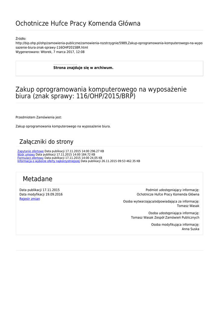 Ochotnicze Hufce Pracy Komenda Główna Zakup oprogramowania