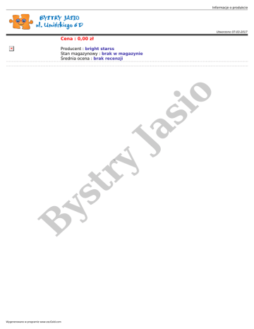 Informacje o produkcie Utworzono 07-03-2017 Cena : 0,00 zł B ys tr y Ja si o Producent : bright starss Stan magazynowy : brak w magazynie Średnia ocena : brak recenzji Wygenerowano w programie www.oscGold.com