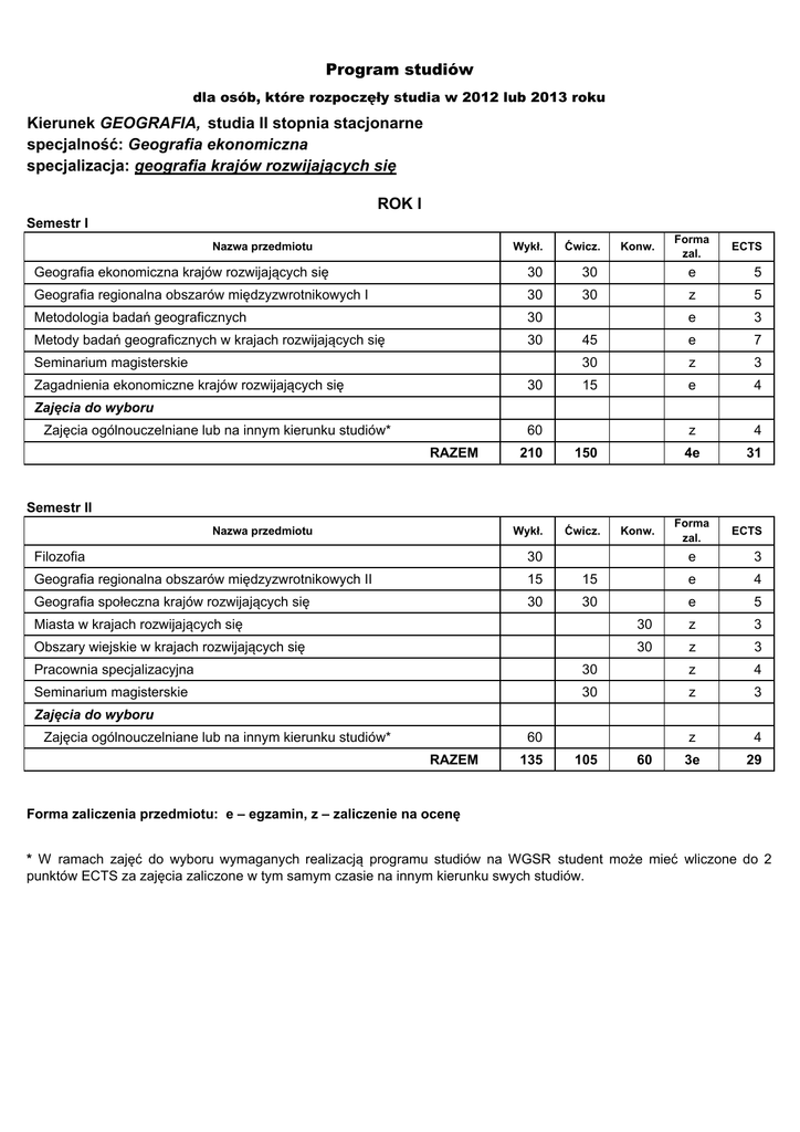 wybrać co najmniej jeden z dwóch wymienionych przedmiotów ("Globalne problemy geografii fizycznej" lub "Globalne